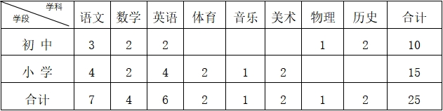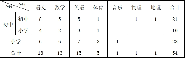 从全县教育系统在编在岗的初中、小学教师(除城关、城郊以外的乡镇在编在岗教师)中选调。